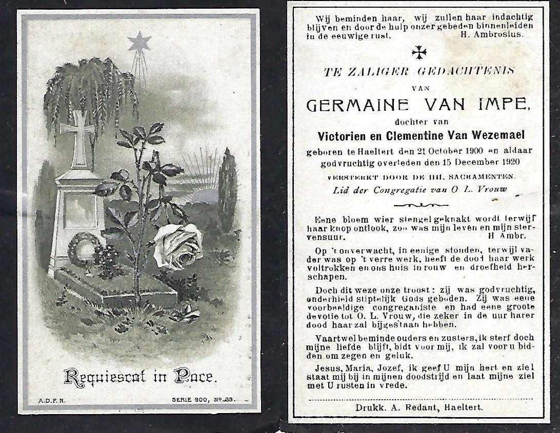 Van Impe MariaHaaltert27/10/1885Haaltert18/02/1920