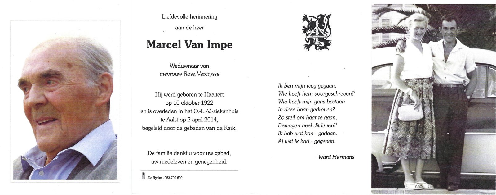 Van Impe MarcelVercrysse RosaHaaltert10/10/1922Aalst02/04/2014