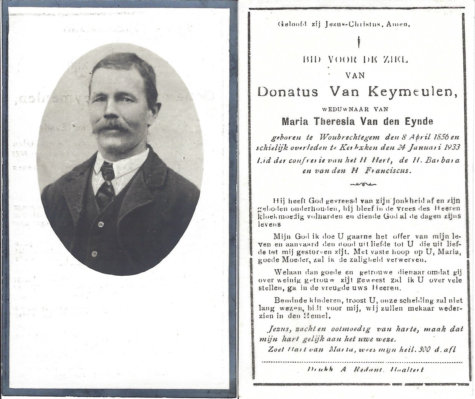 Van Keymeulen DonatusVan den Eynde Maria ThérèsiaWoubrechtegem08/04/1856Kerksken24/01/1933