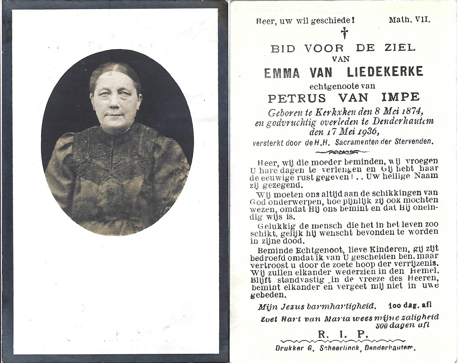 Van Liedekerke EmmaVan Impe PetrusKerksken08/05/1874Denderhoutem17/05/1936