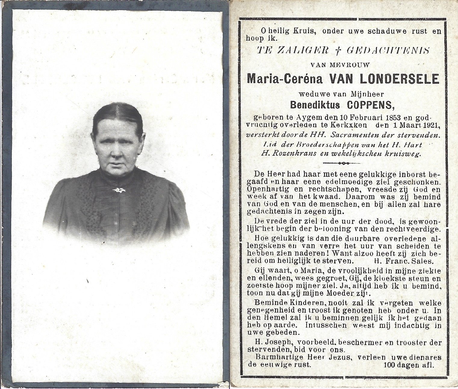 Van Londersele Maria CerénaCoppens BenediktusAaigem10/02/1853Kerksken01/03/1921