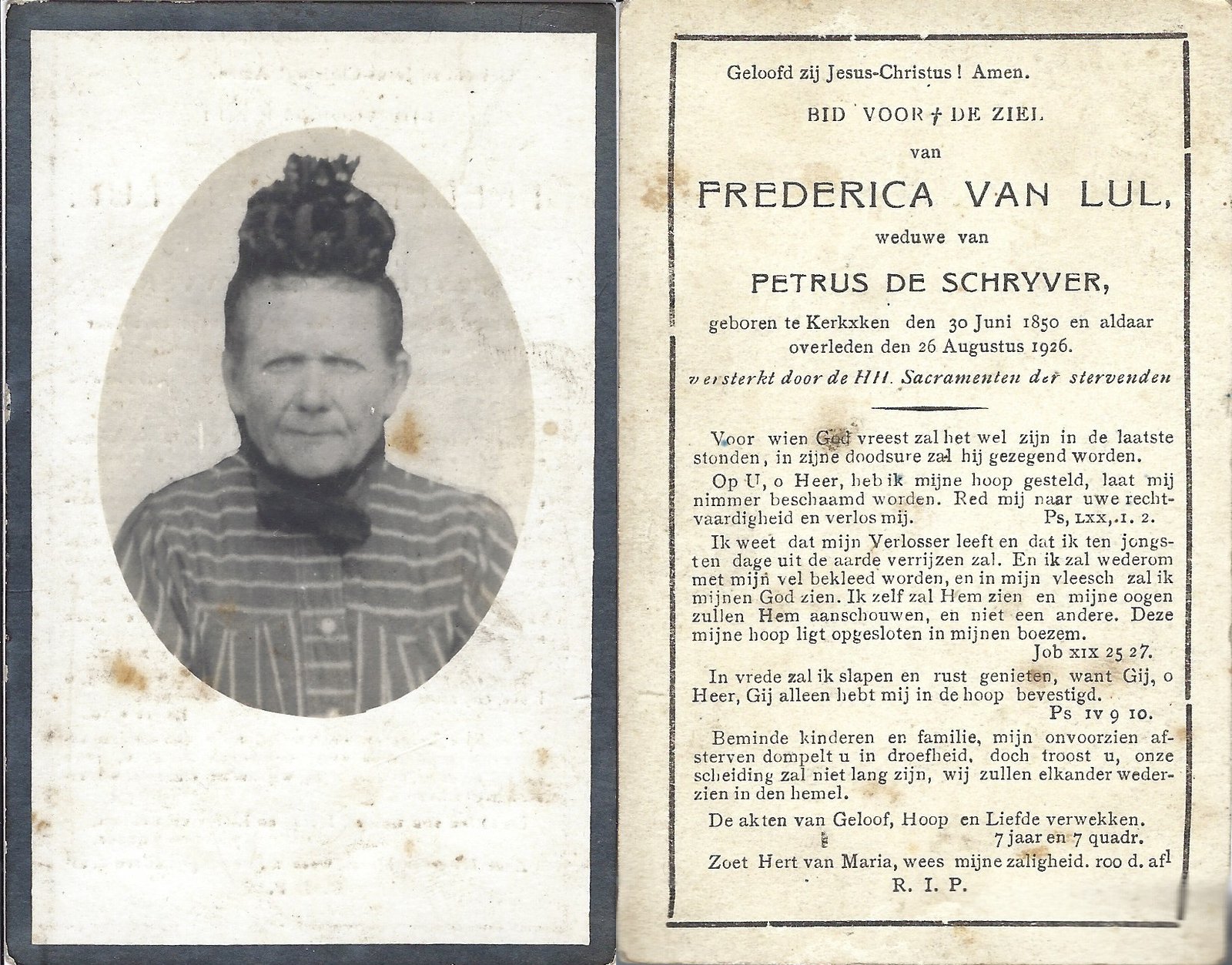 Van Lul FredericaDe Schryver PetrusKerksken30/06/1850Kerksken26/08/1926