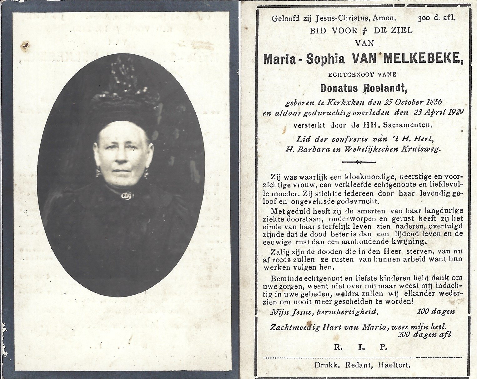 Van Melkebeke Maria SophiaRoelandt DonatusKerksken25/10/1856Kerksken23/04/1929