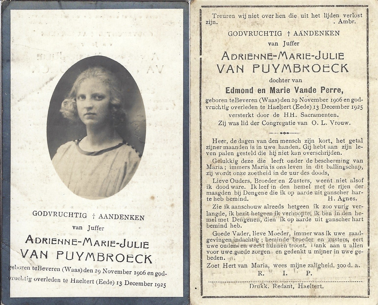 Van Puymbroeck AdrienneBeveren29/11/1906Haaltert13/12/1925
