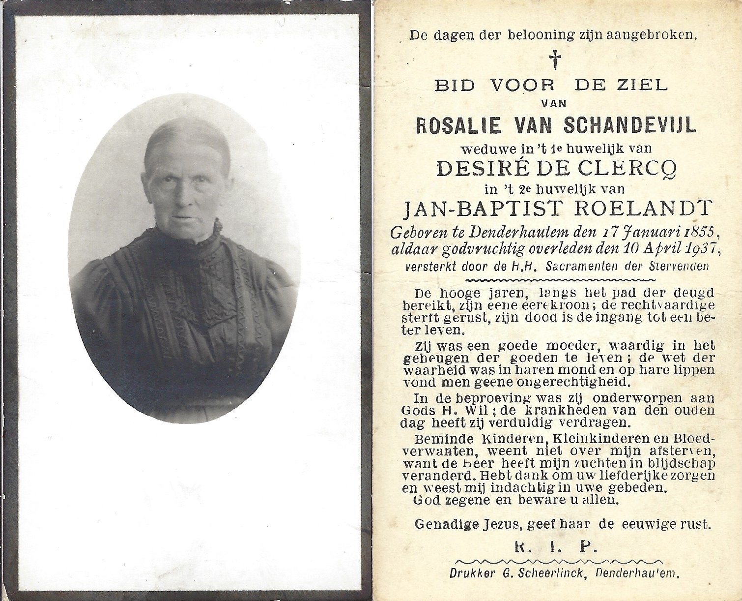 Van Schandevijl RosalieDe Clercq Desiré en Roelandt Jan BaptistDenderhoutem17/01/1855Denderhoutem10/04/1937