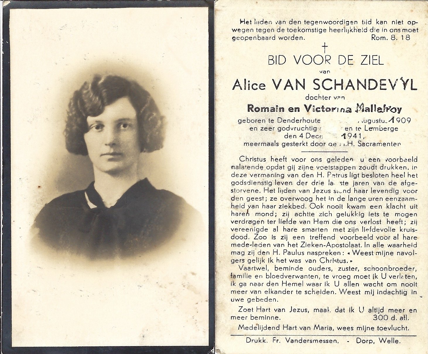Van Schandevyl AliceDenderhoutem23/08/1909Lemberge04/12/1941