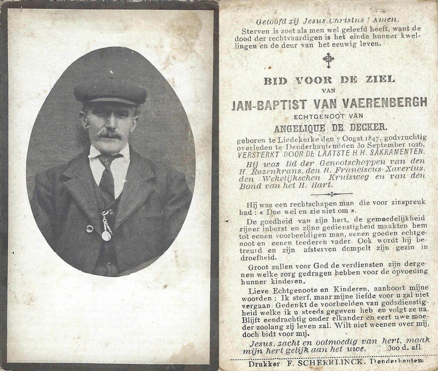 Van Vaerenbergh Jan BaptistDe Decker AngeliqueLiedekerke07/08/1847Denderhoutem30/09/1926