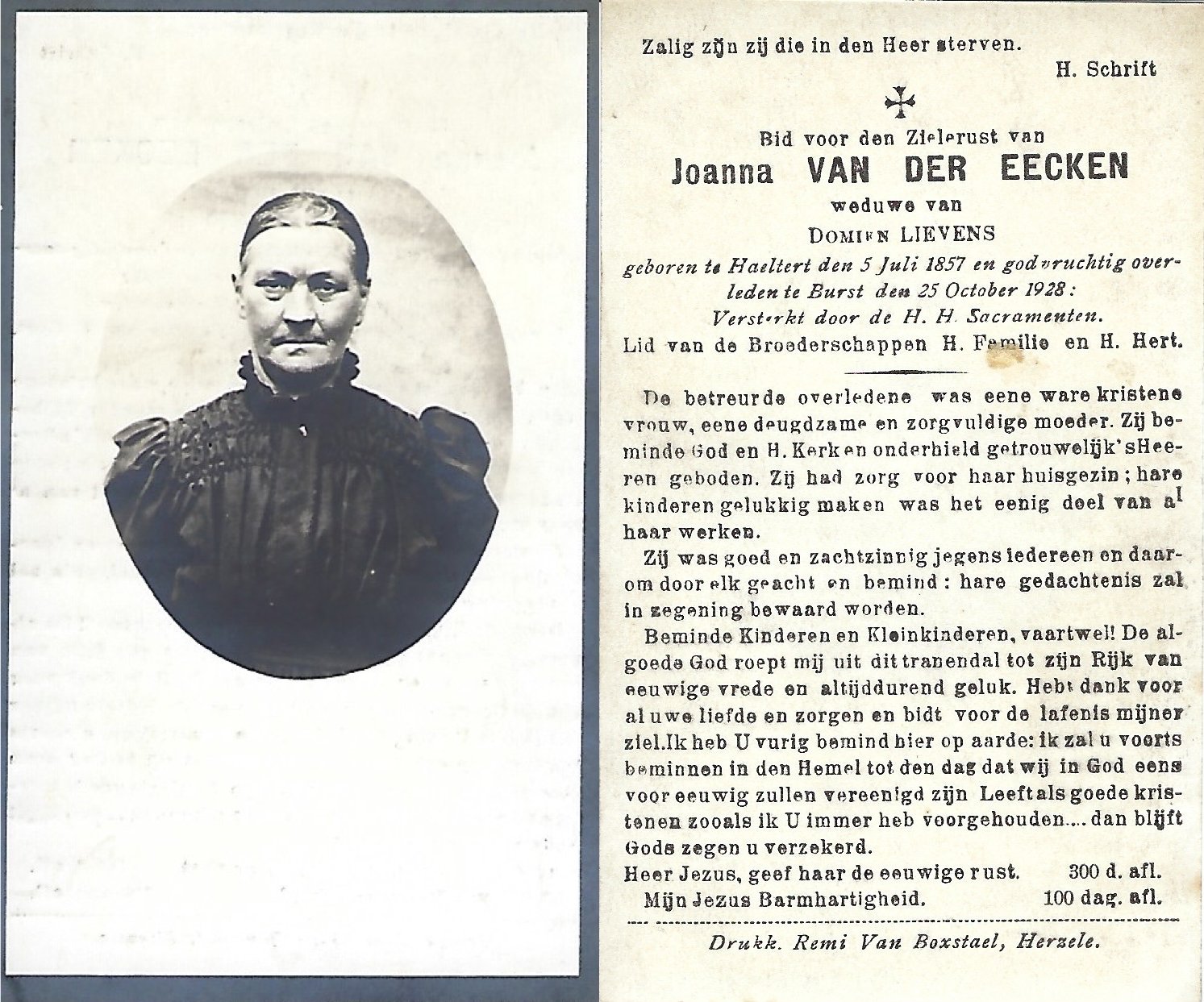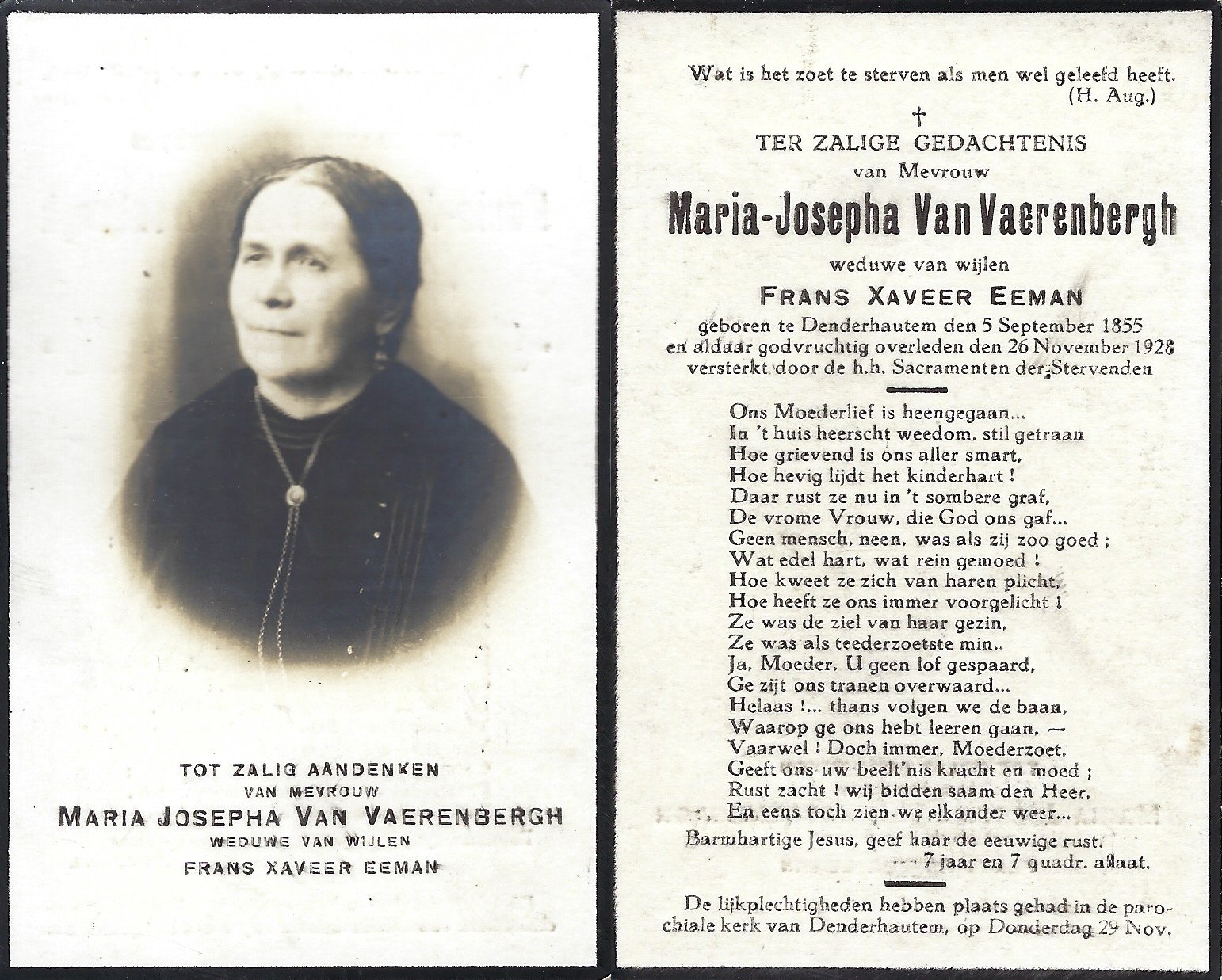 Van Vaerenbergh Maria JosephaEeman Frans XaveerDenderhoutem05/09/1855Denderhoutem26/11/1928