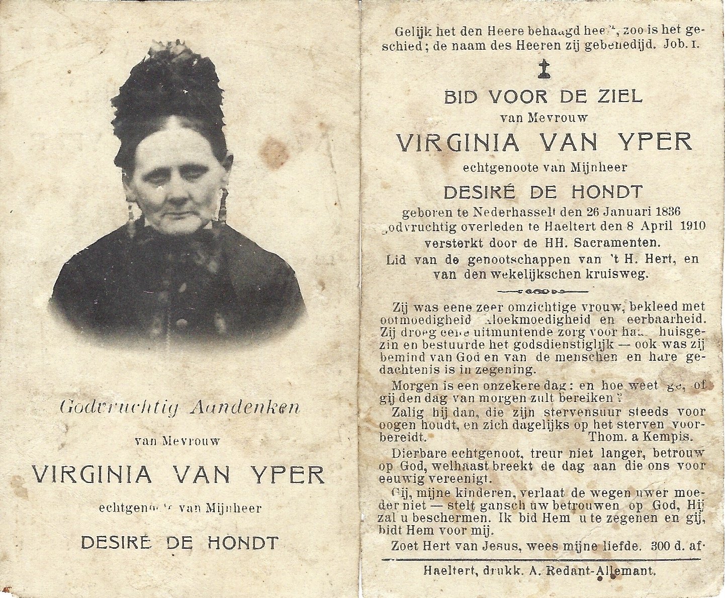 Van Yper VirginiaDe Hondt DesiréNederhasselt26/01/1836Haaltert08/04/1910