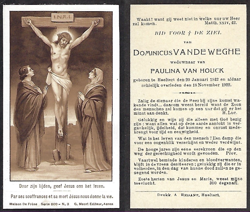 Van Damme MathildeDe Proost Jan BaptistDenderhoutem10/04/1846Neigem23/02/1930