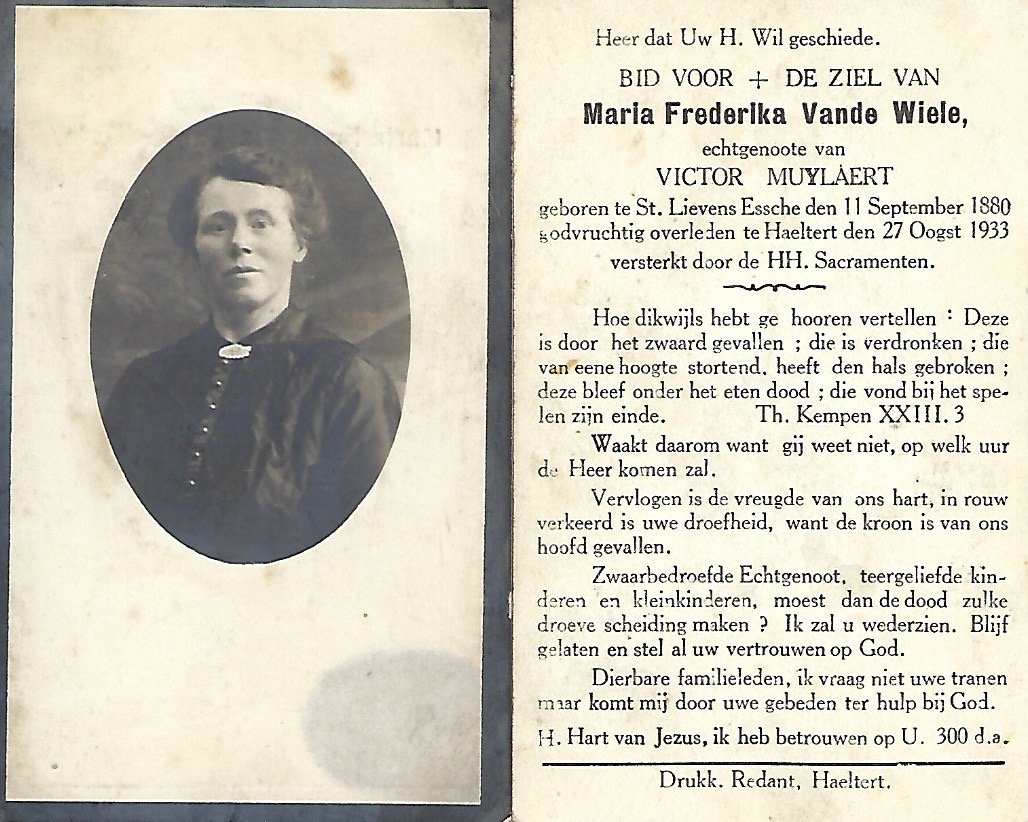 Van Vaerenbergh MariaDe Schrijver FransHaaltert02/10/1883Haaltert19/05/1974
