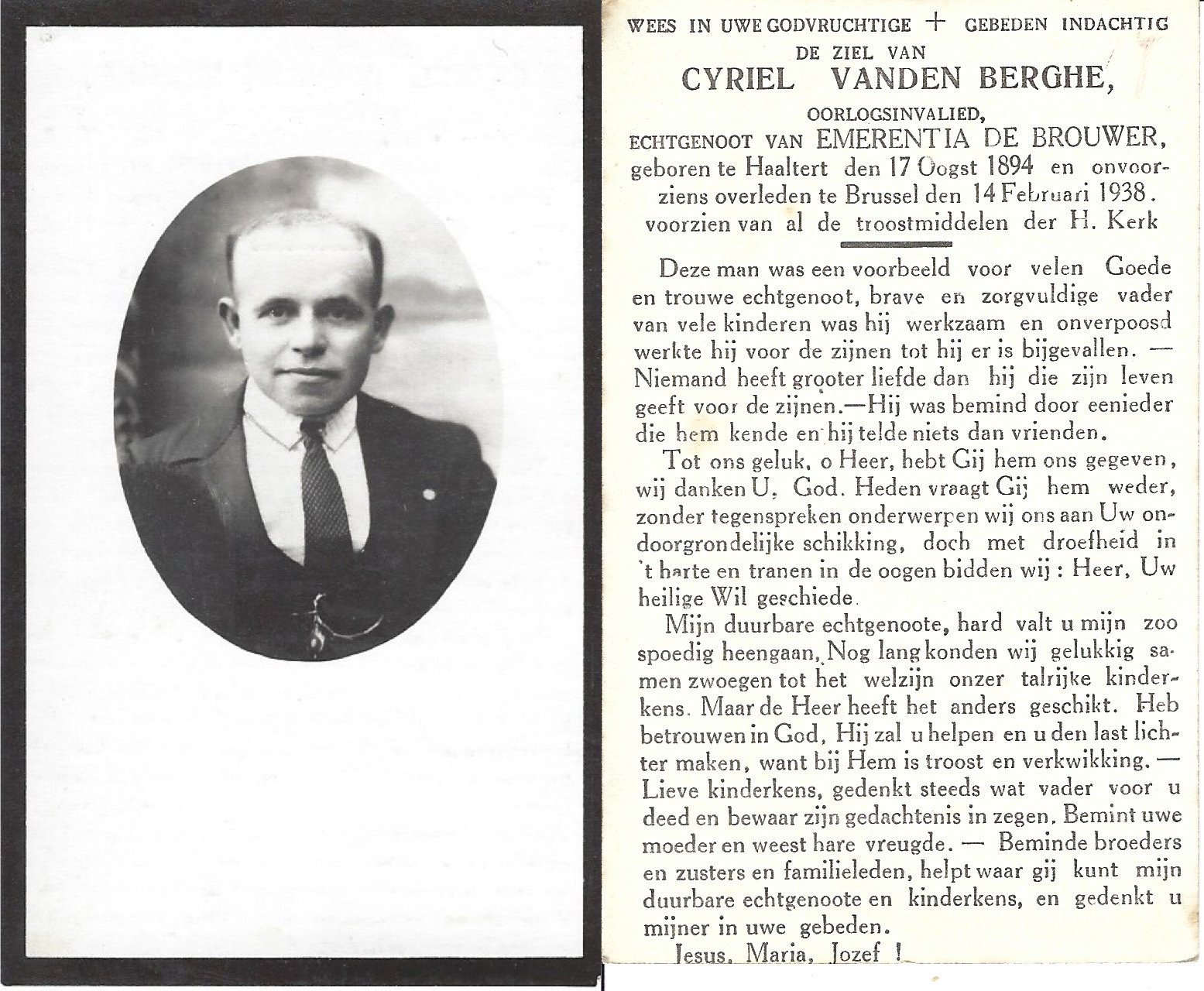 Vanden Berghe CyrielDe Brouwer EmerentiaHaaltert17/08/1894Brussel14/02/1938