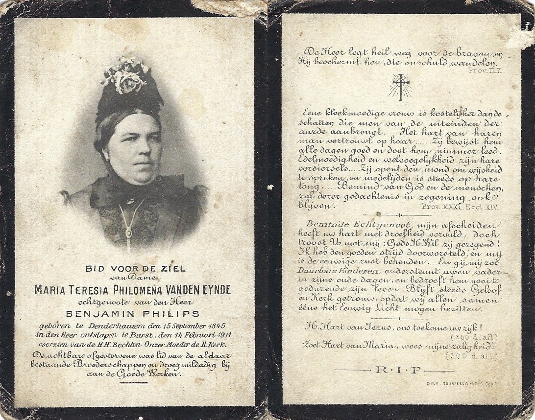 Vanden Eynde Maria Teresia Philomena Philips BenjaminDenderhoutem15/09/1845Burst14/02/1911
