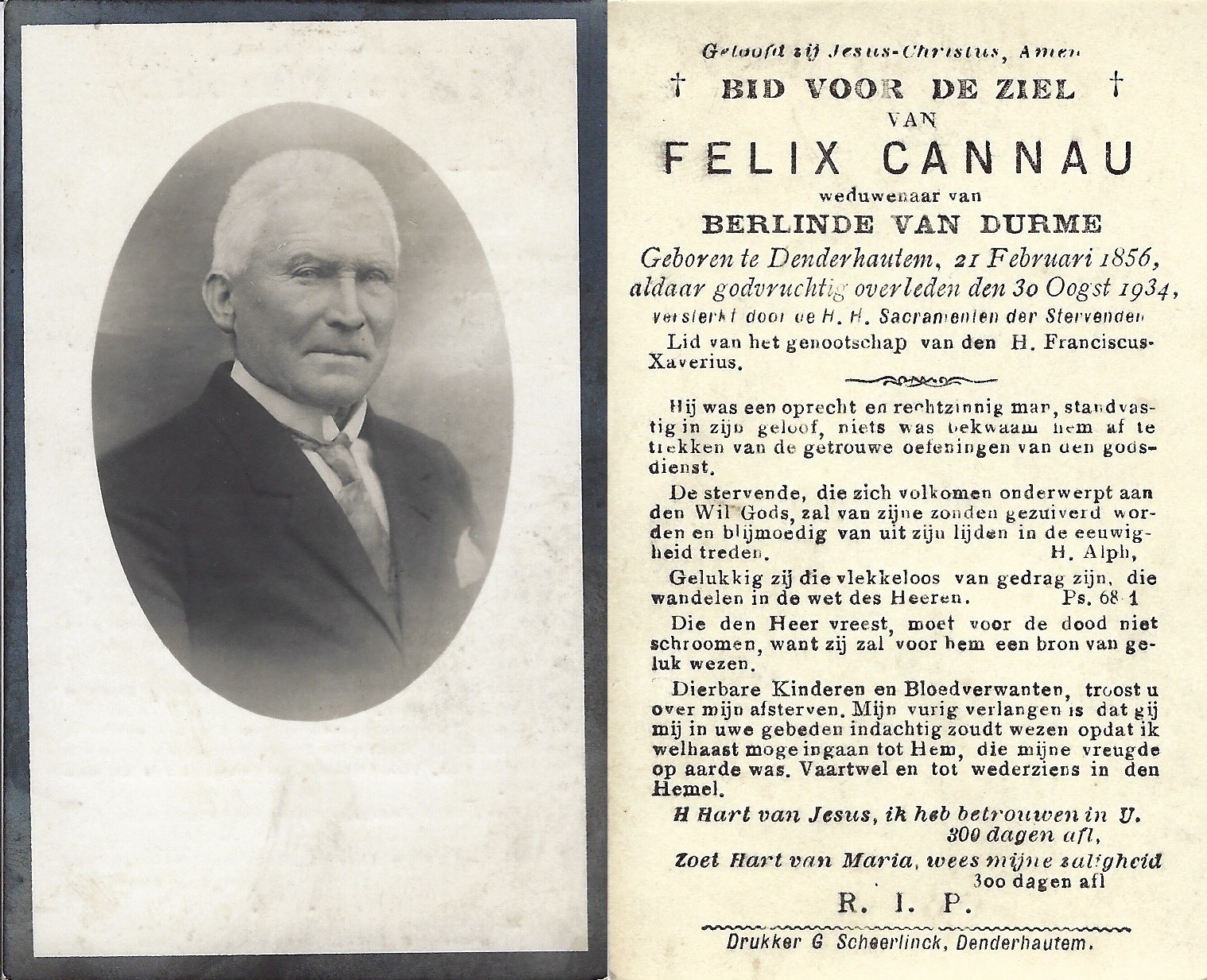 Cannau FelixVan Durme BerlindeDenderhoutem21/02/1856Denderhoutem30/08/1934