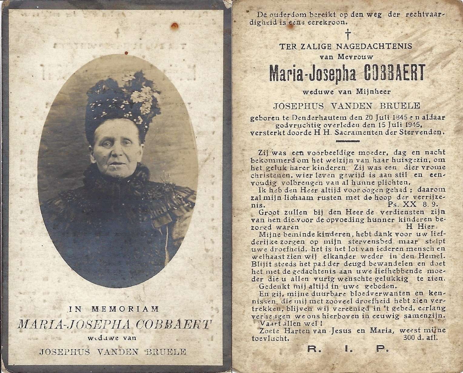Cobbaert Maria JosephaVanden Bruele JosephusDenderhoutem20/07/1845Denderhoutem15/07/1945