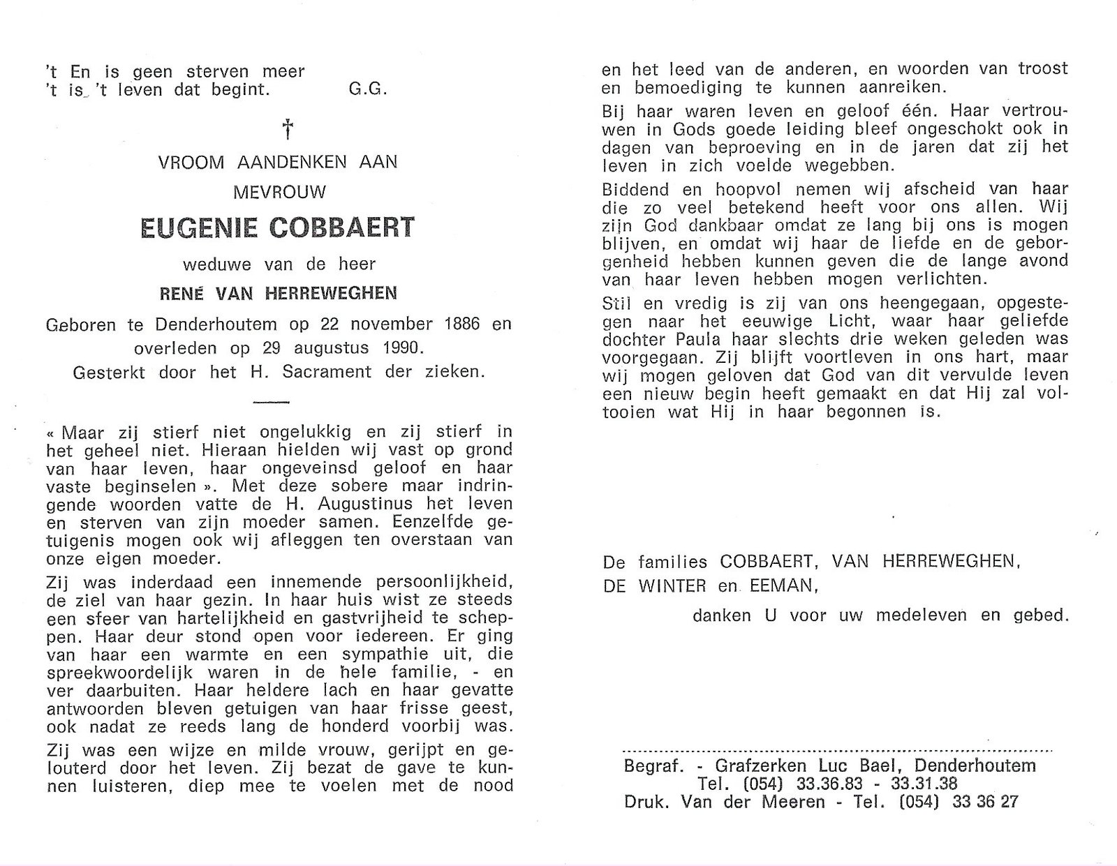 Cobbaert EugenieVan Herreweghen RenéDenderhoutem22/11/1886Denderhoutem29/08/1990