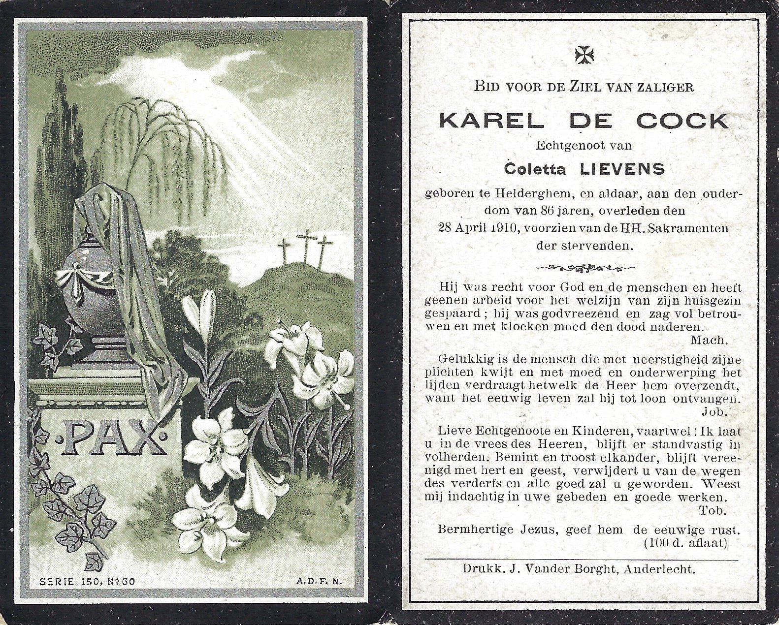 De Cock Carolus LudovicusLievens ColettaHeldergem26/04/1824Heldergem28/04/1910