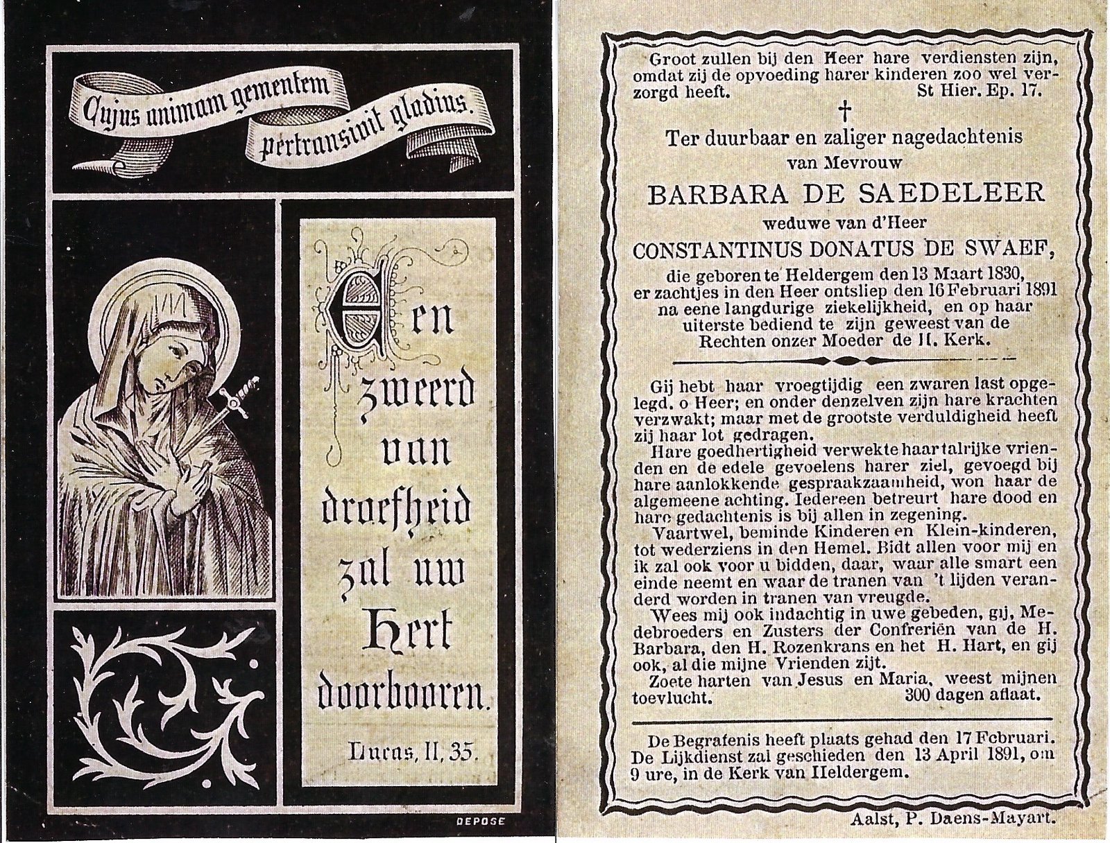 De Saedeleer BarbaraDe Swaef Constantinus DonatusHeldergem13/03/1830Heldergem16/02/1891