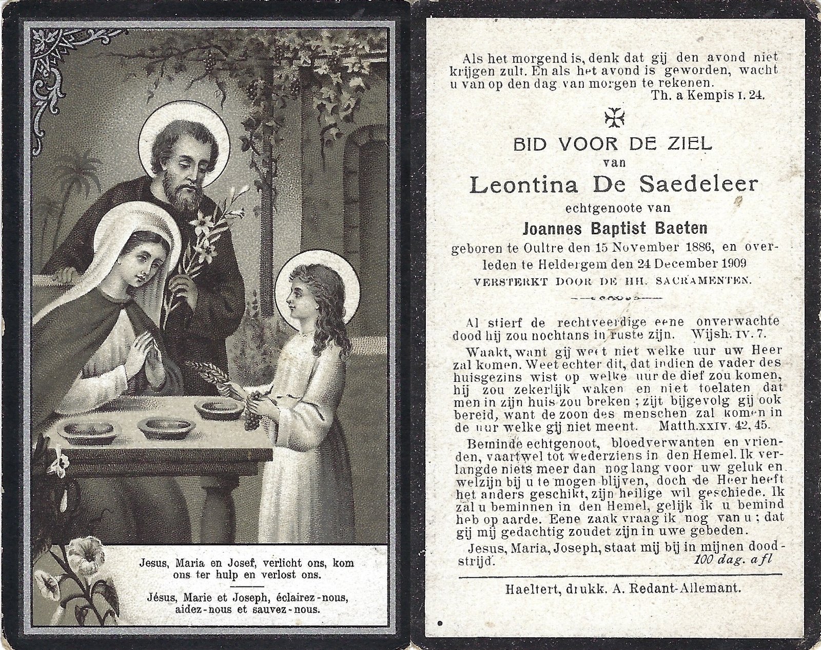 De Saedeleer LeontinaBaeten Joannes BaptistOuter15/11/1886Heldergem24/12/1909