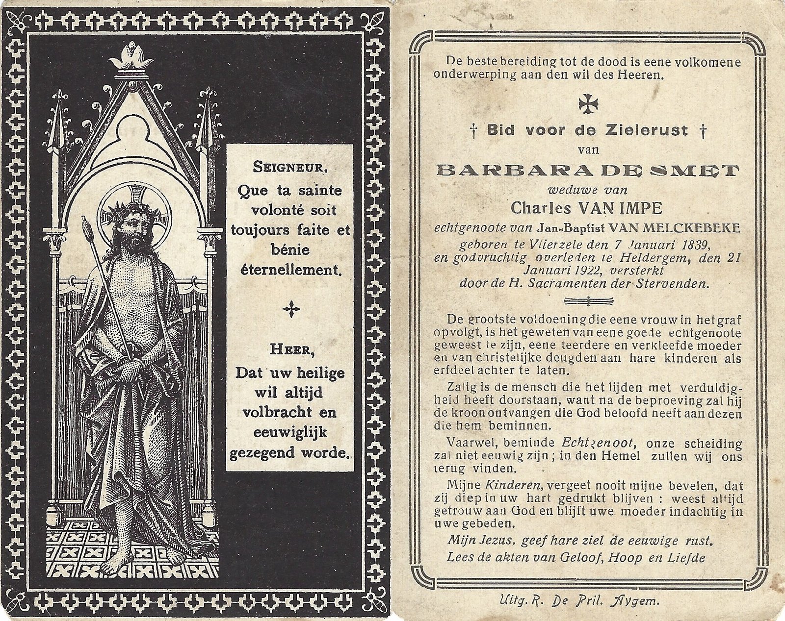 De Smet BarbaraVan Impe CharlesVlierzele07/01/1839Heldergem21/01/1922