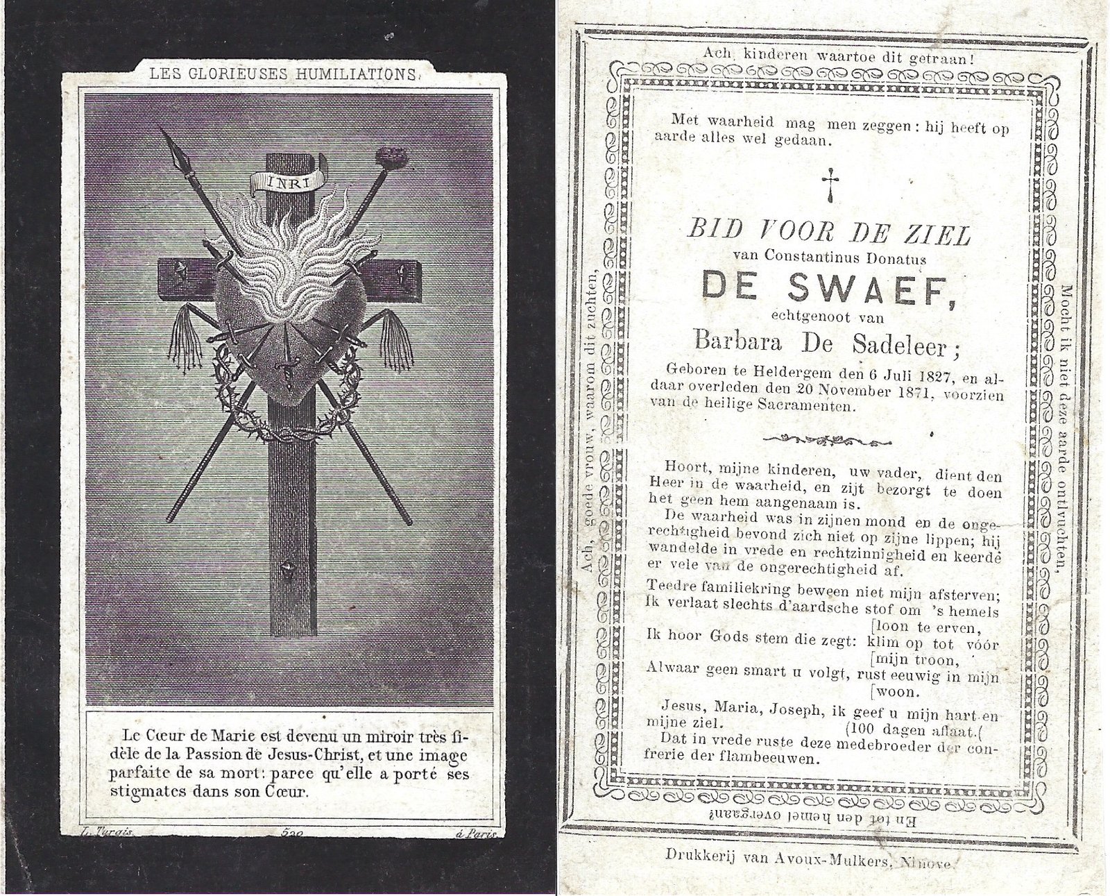 De Swaef Constantinus DonatusDe Saedeleer BarbaraHeldergem06/07/1827Heldergem20/11/1871
