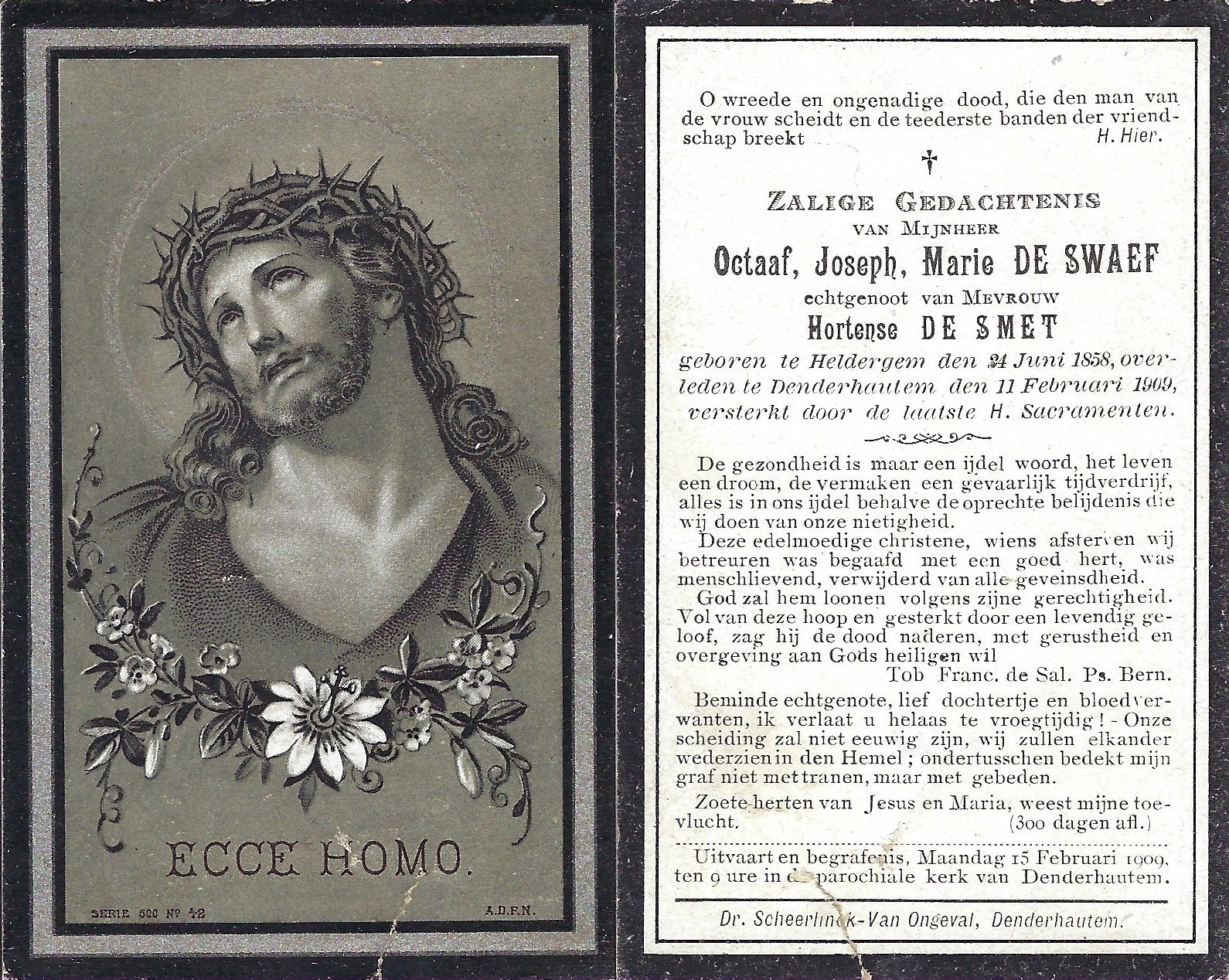 De Swaef Octaaf JosephDe Smet HortenseHeldergem24/06/1858Denderhoutem11/02/1909
