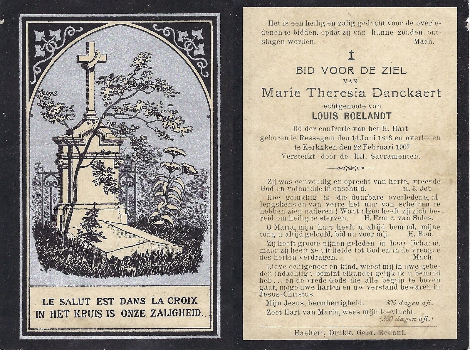 Danckaert Maria-ThérèsiaRoelandt LouisRessegem11/06/1843Kerksken22/02/1907