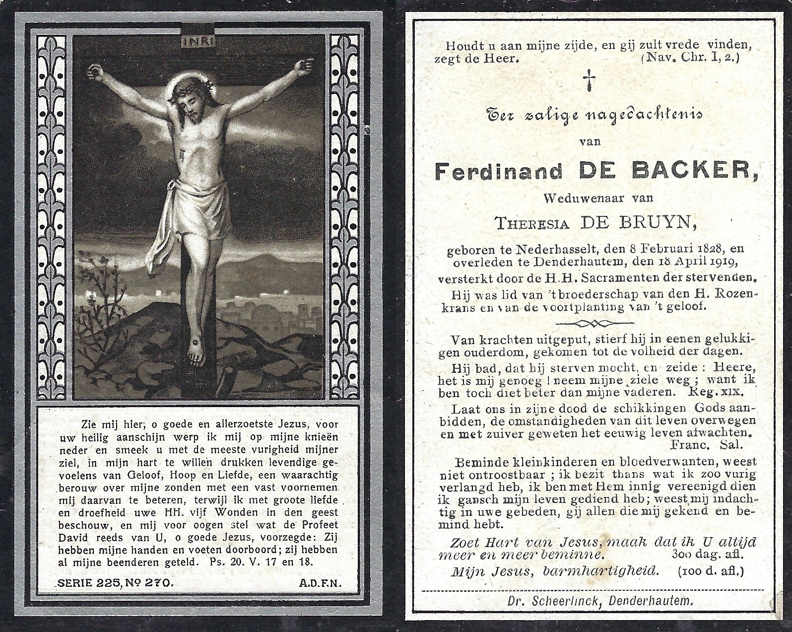 De Backer FerdinandDe Bruyn TheresiaNederhasselt08/02/1828Denderhoutem18/04/1919