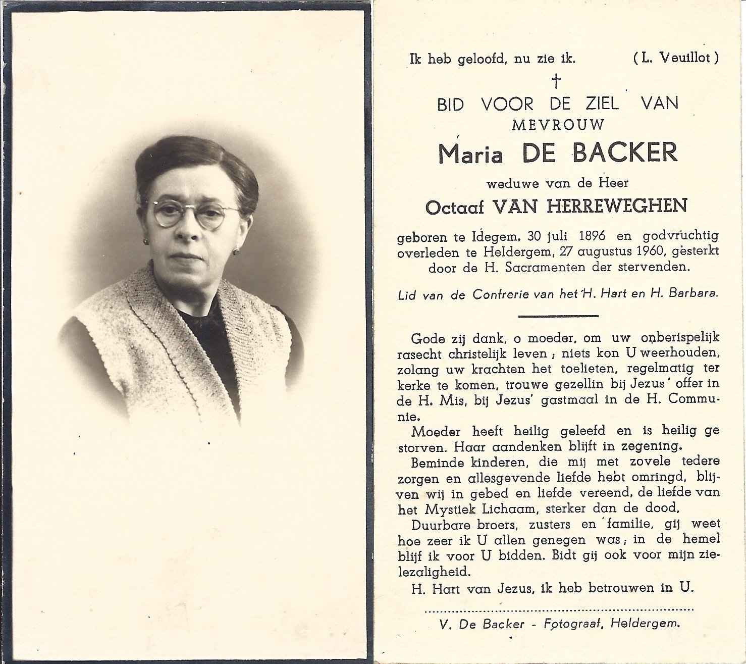 De Backer MariaVan Herreweghen OctaafIdegem30/07/1896Heldergem27/08/1960