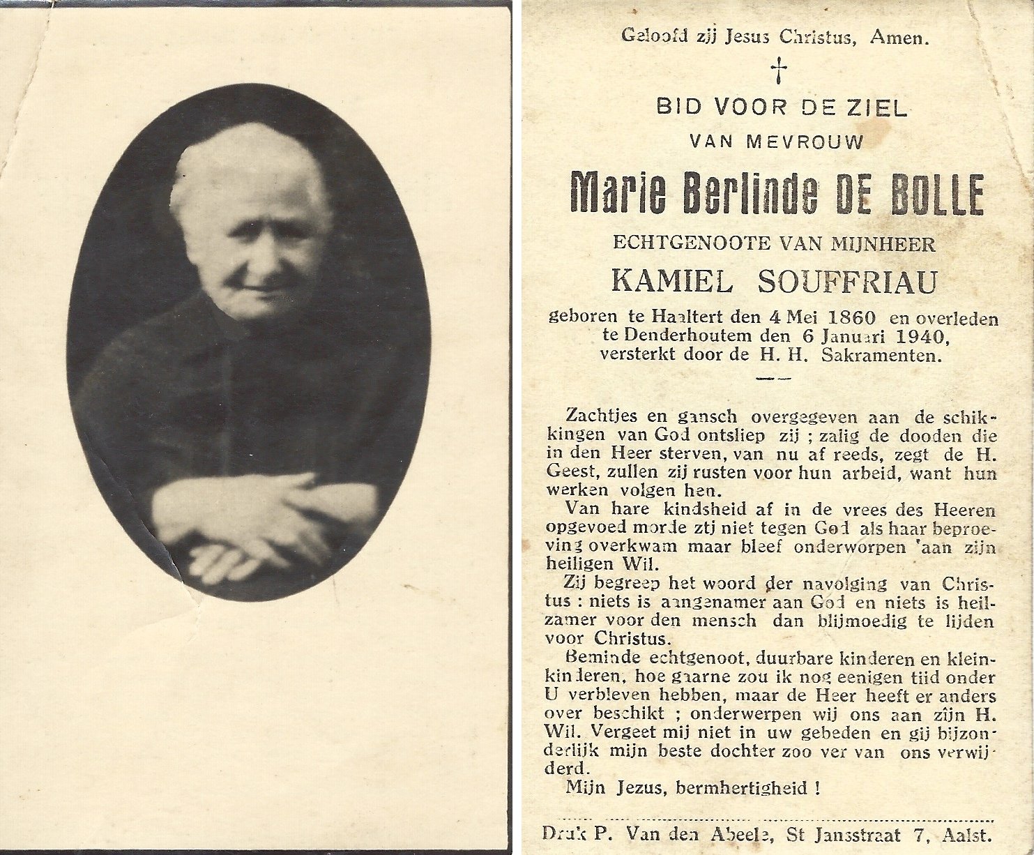 De Bolle Marie BerlindeSouffriau KamielHaaltert04/05/1860Denderhoutem06/01/1940