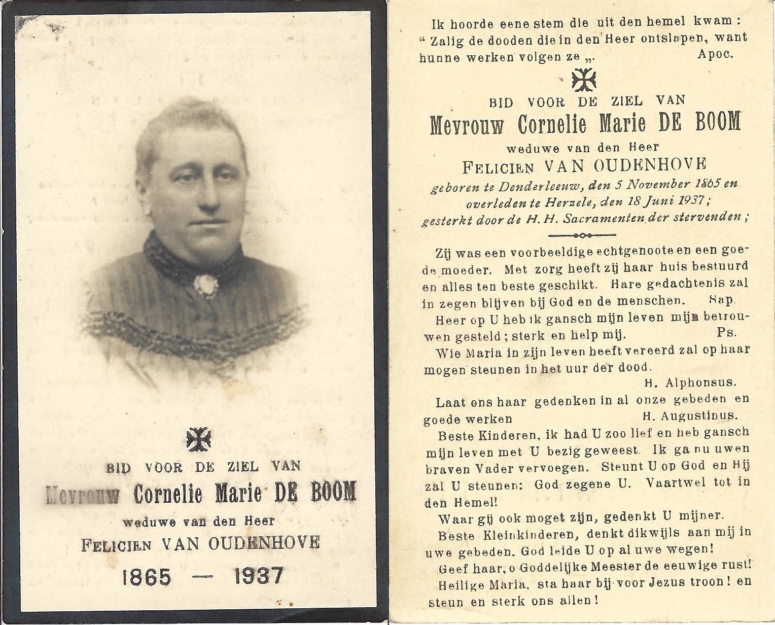 De Boom Cornelie MarieVan Oudenhove FelicienDenderleeuw05/11/1865Herzele18/06/1937
