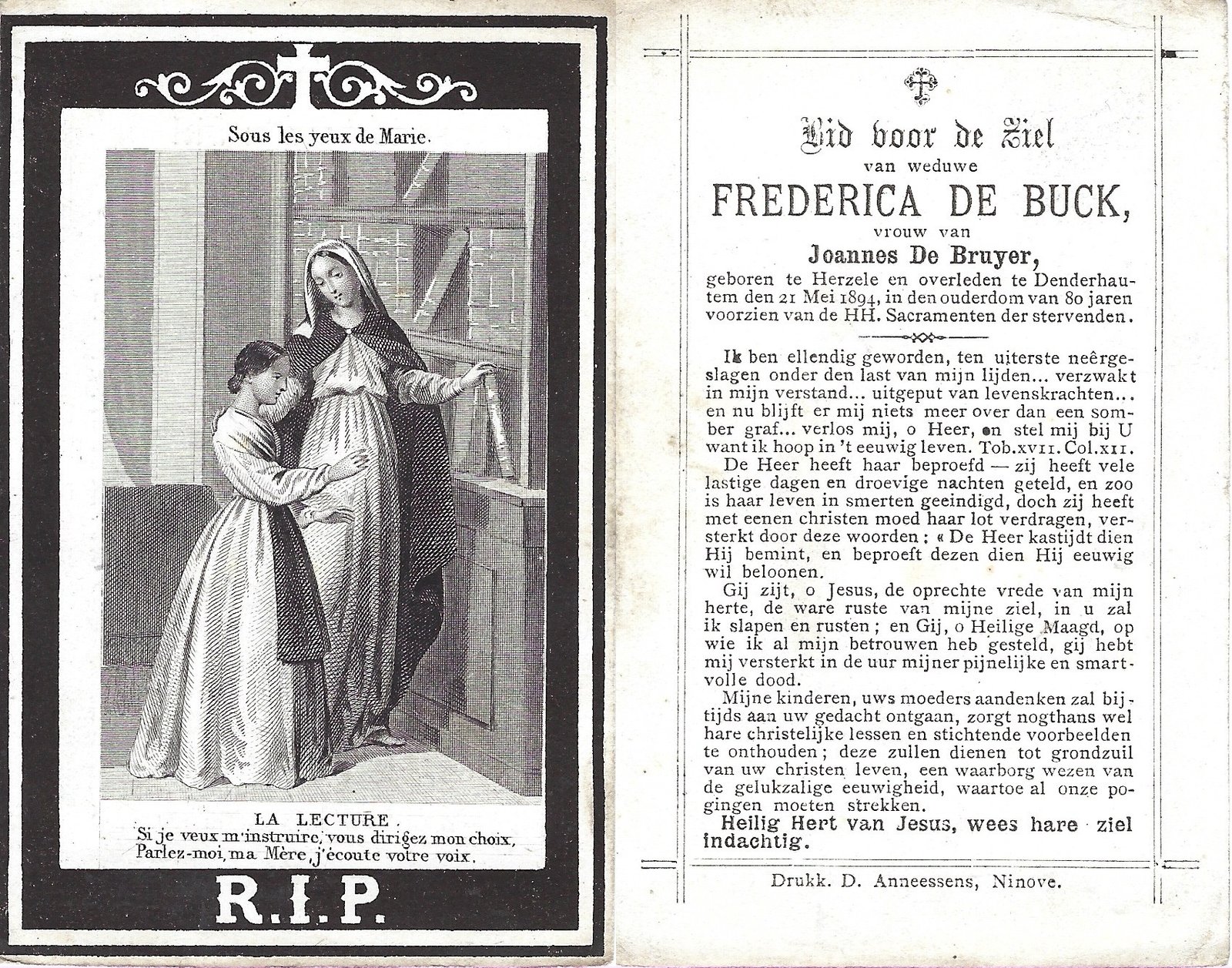 De Buck FredericaDe Bruyer JoannesHerzele01/03/1814Denderhoutem21/05/1894
