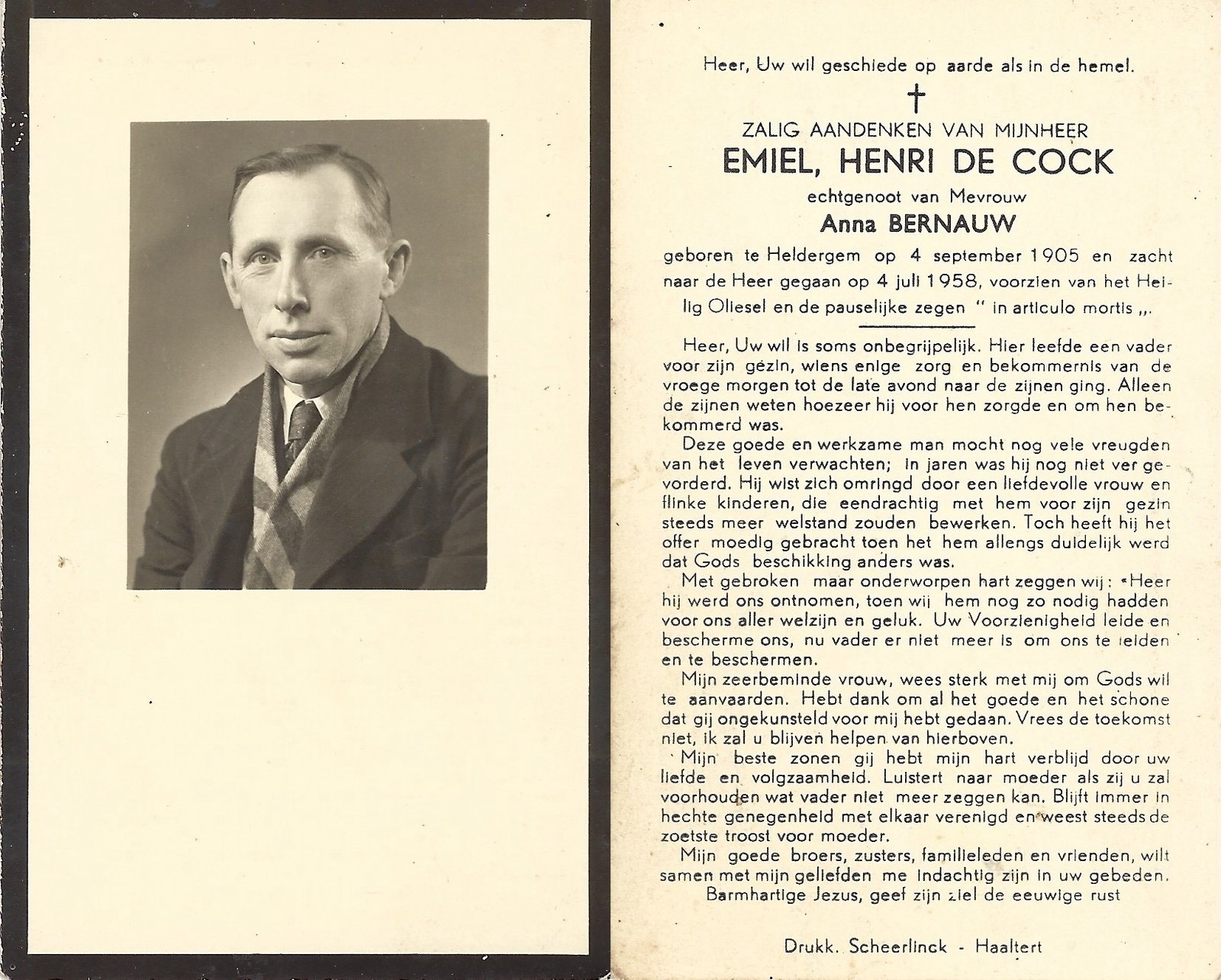 De Cock Emiel HenriBernauw AnnaHeldergem04/09/1905Heldergem04/07/1958