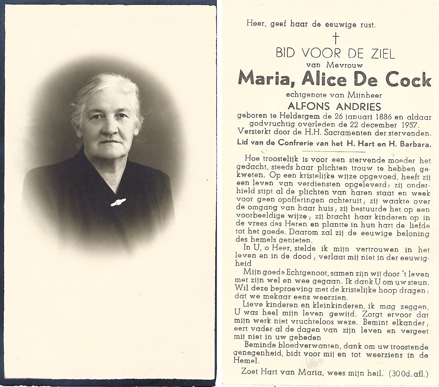 De Cock Maria AliceAndries AlfonsHeldergem26/01/1886Heldergem22/12/1957