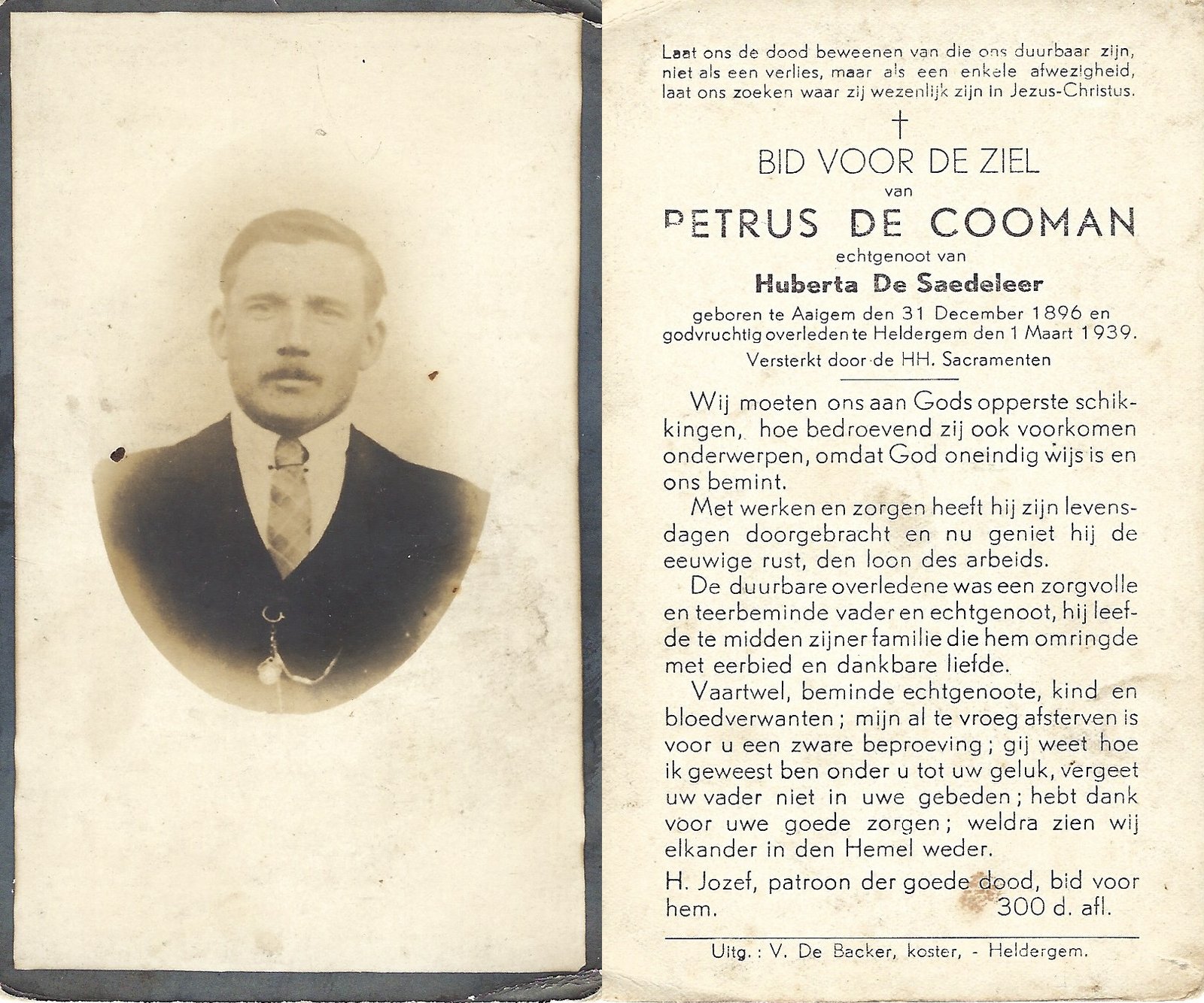 De Cooman PetrusDe Saedeleer HubertaAaigem31/12/1896Heldergem01/03/1939