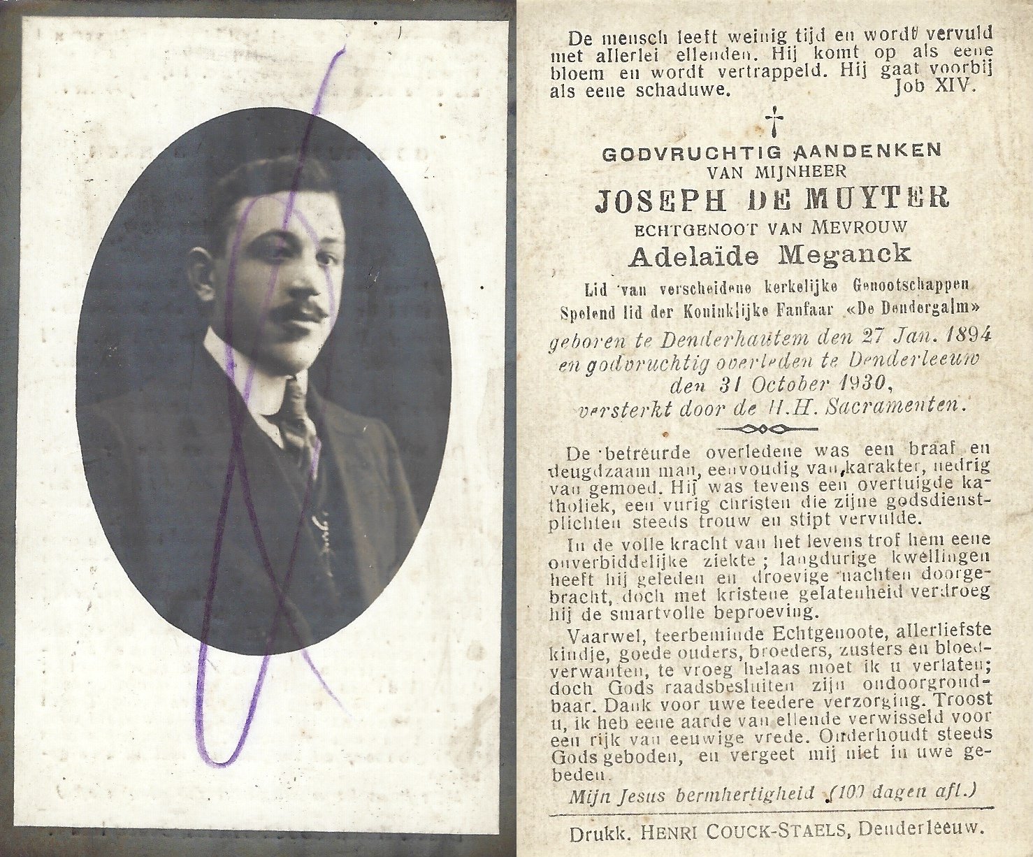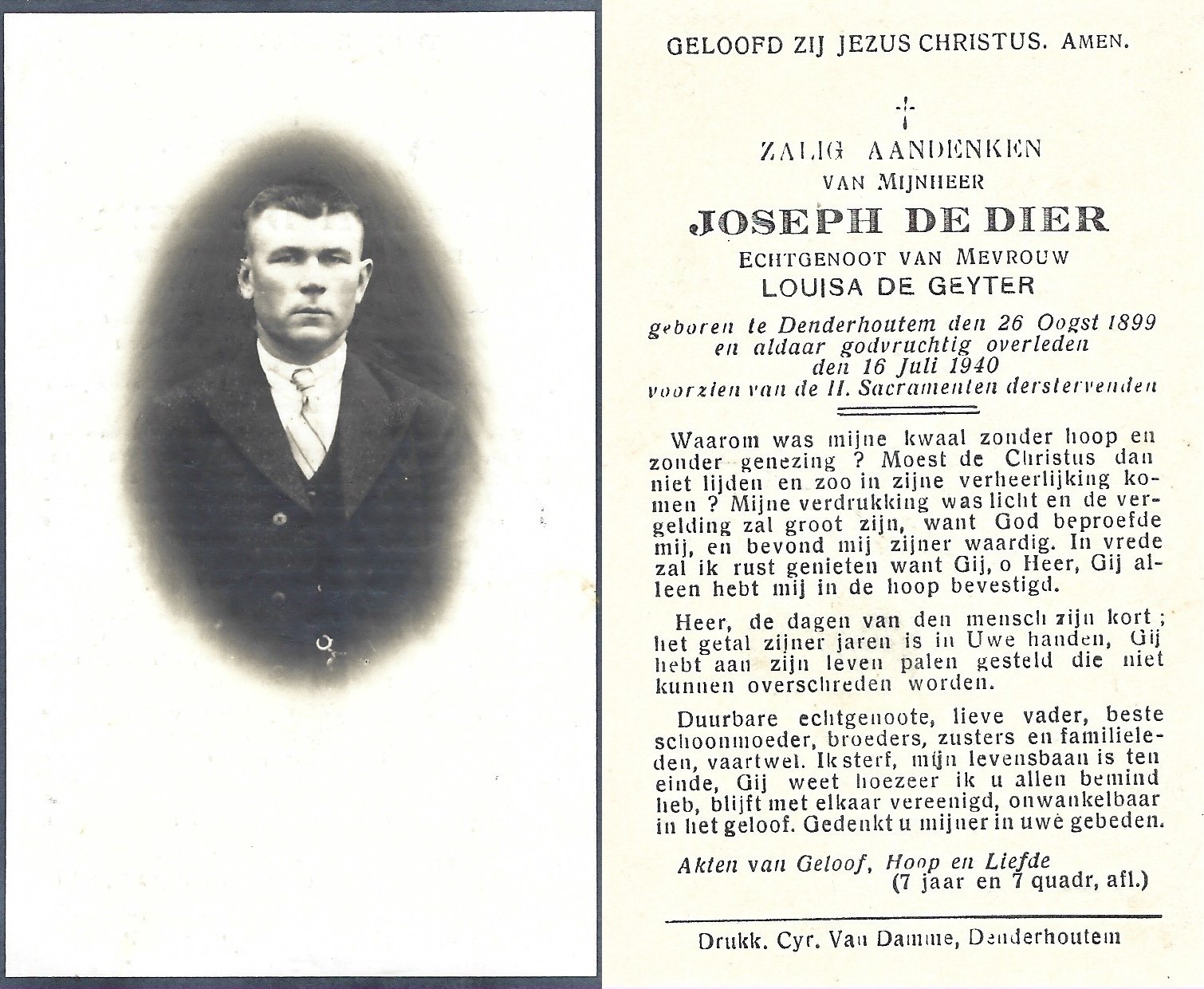 De Dier JosephDe Geyter LouisaDenderhoutem26/08/1899Denderhoutem16/07/1940