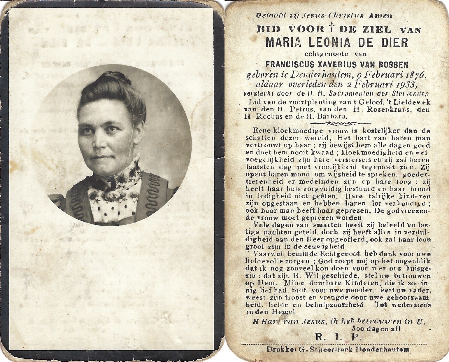 De Dier Maria LeoniaVan Rossen FranciscusDenderhoutem09/02/1876Denderhoutem02/02/1933