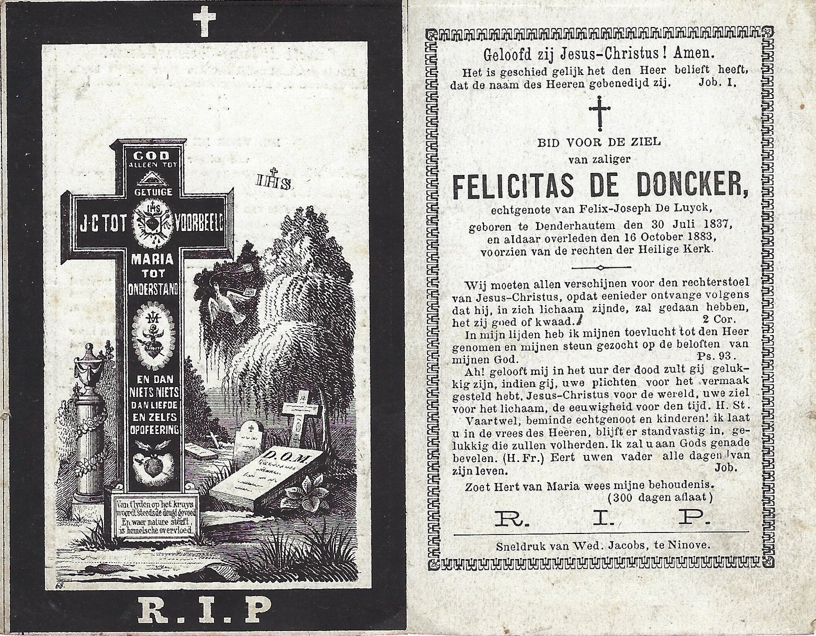 De Doncker FelicitasDe Luyck Felix JosephDenderhoutem30/07/1837Denderhoutem16/10/1883