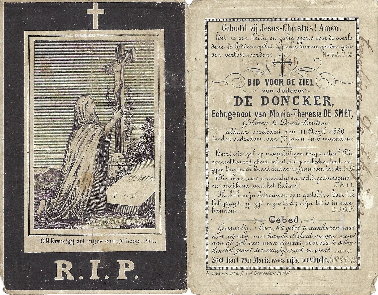De Doncker JudocusDe Smet Maria TheresiaDenderhoutem19/02/1807Denderhoutem11/04/1880