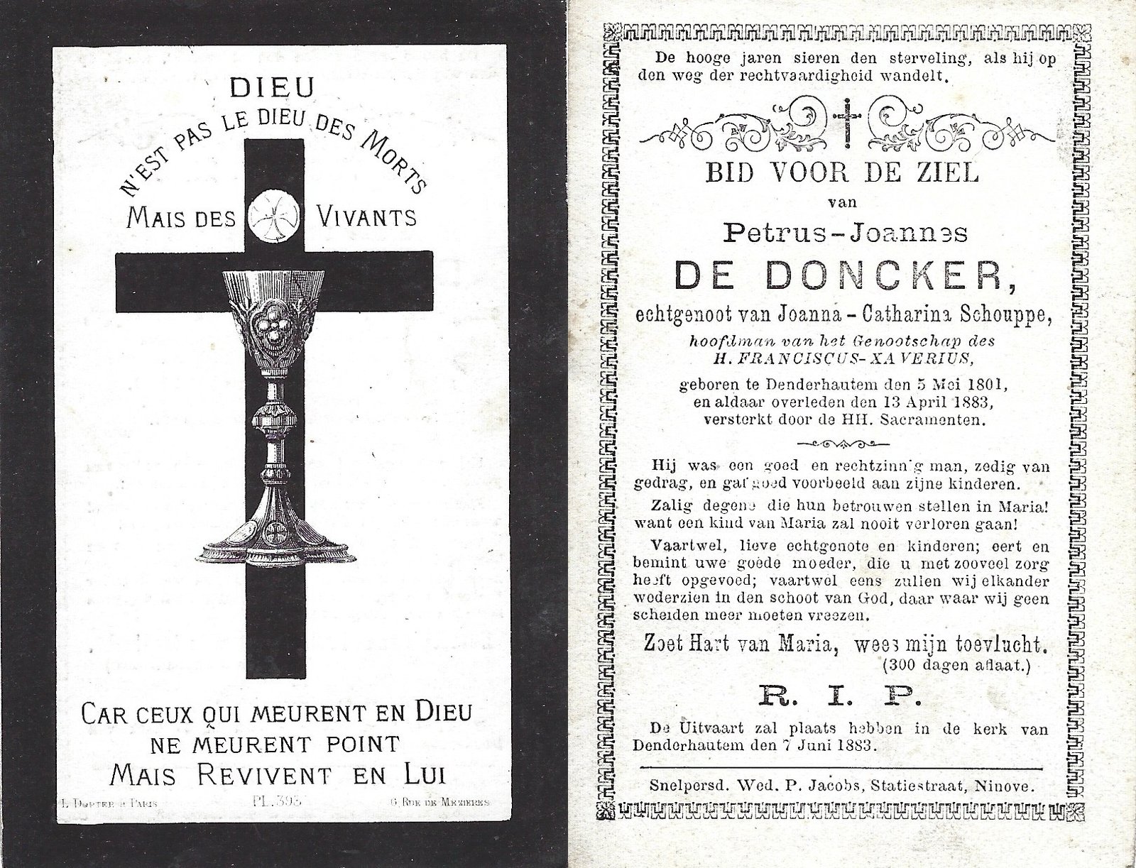 De Doncker Petrus JoannesSchouppe Maria CatharinaDenderhoutemO5/05/1801Denderhoutem13/04/1883