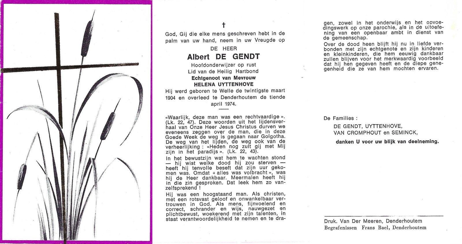 De Gendt AlbertUyttenhove HelenaWelle20/03/1904Denderhoutem10/04/1974