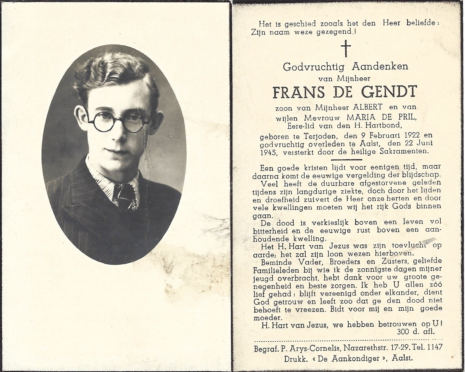 De Gendt FransTerjoden09/02/1922Aalst22/06/1945