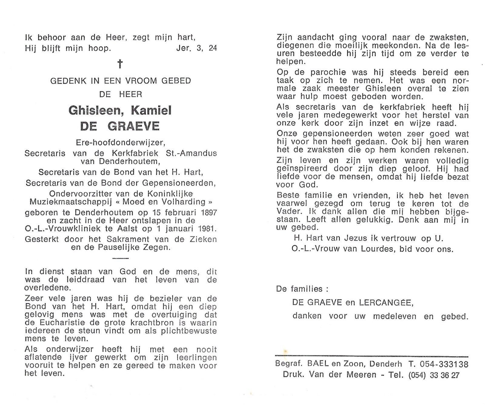 De Graeve Ghisleen KamielDenderhoutem15/02/1897Aalst01/01/1981