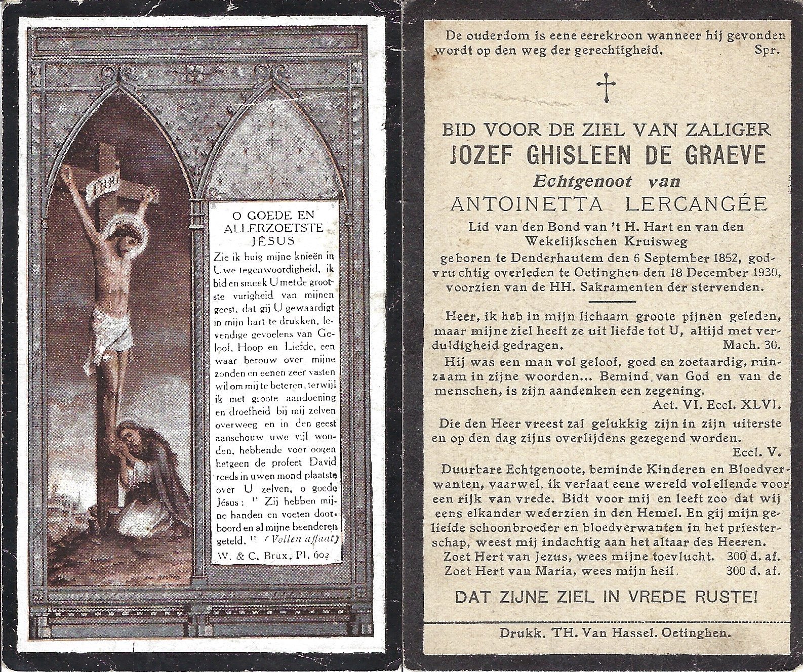 De Graeve Jozef GhisleenLercangée AntoinettaDenderhoutem06/09/1852Oetingen18/02/1930