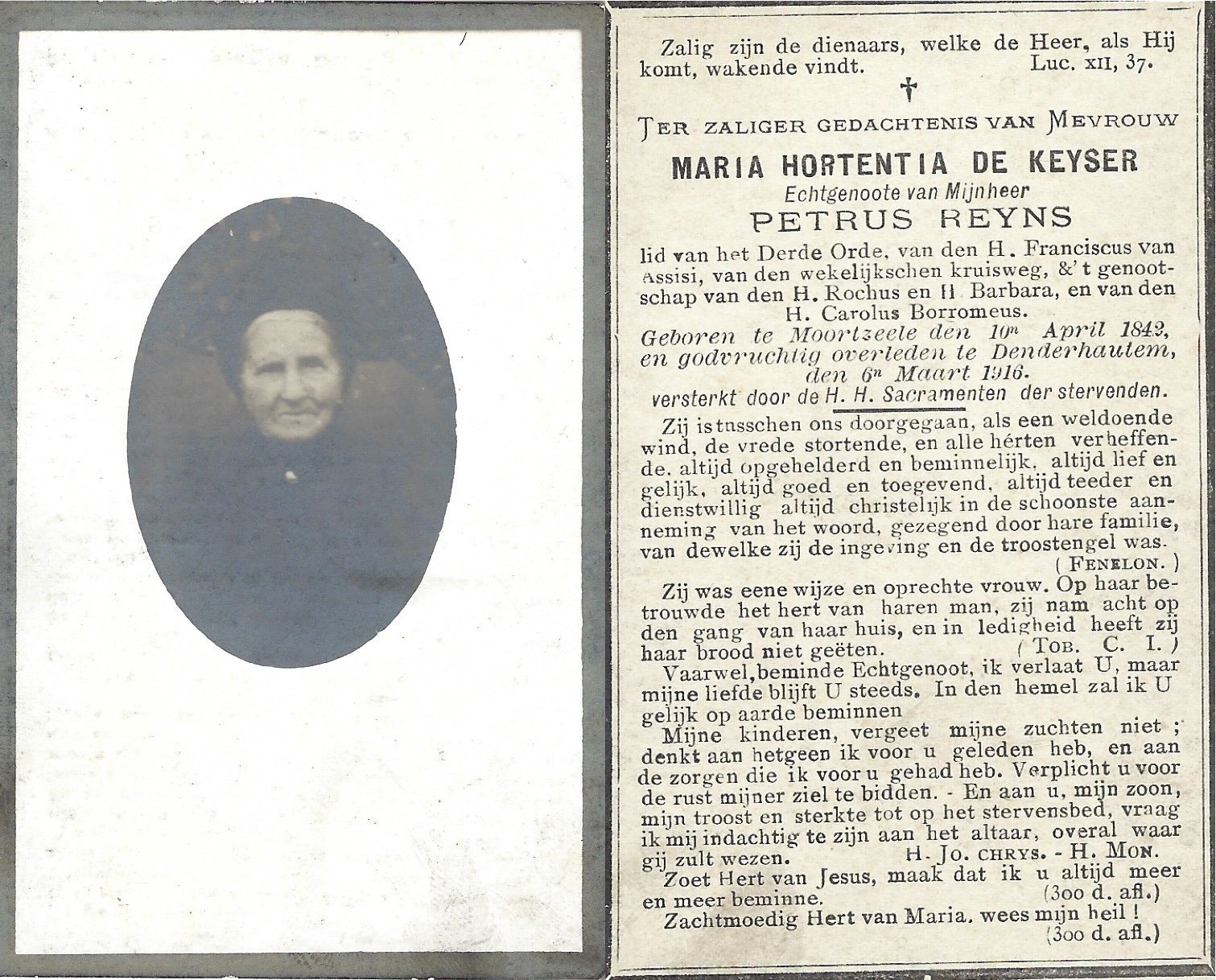 De Keyser Maria HortentiaReyns PetrusMoorsele10/04/1842Denderhoutem06/03/1916