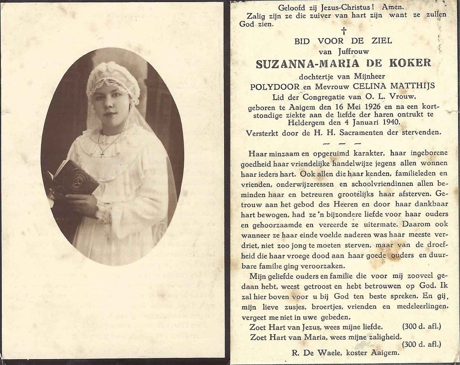 De Koker Suzanna MariaAaigem16/05/1926Heldergem04/01/1940