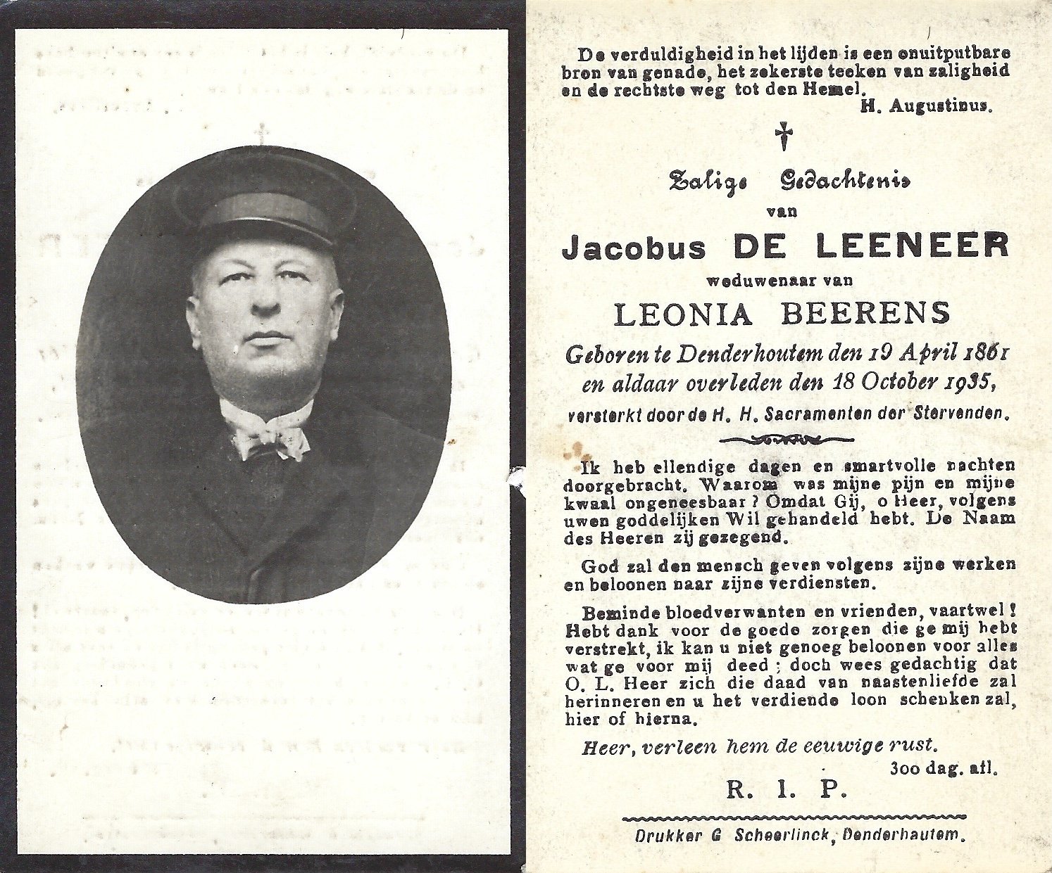 De Leeneer JacobusBeerens LeoniaDenderhoutem19/04/1861Denderhoutem18/10/1935