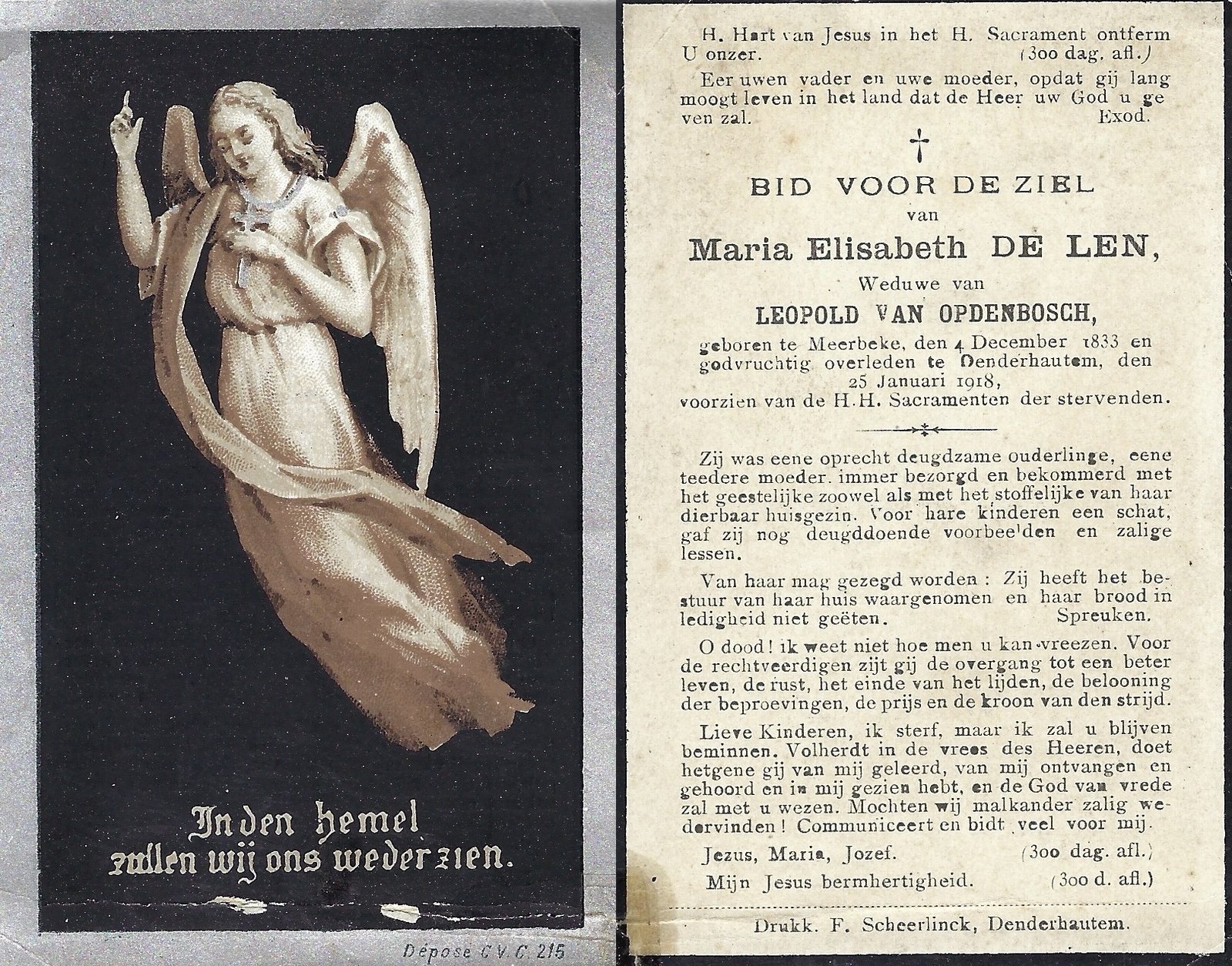 De Len Maria ElisabethVan Opdenbosch LeopoldMeerbeke04/12/1833Denderhoutem25/01/1918