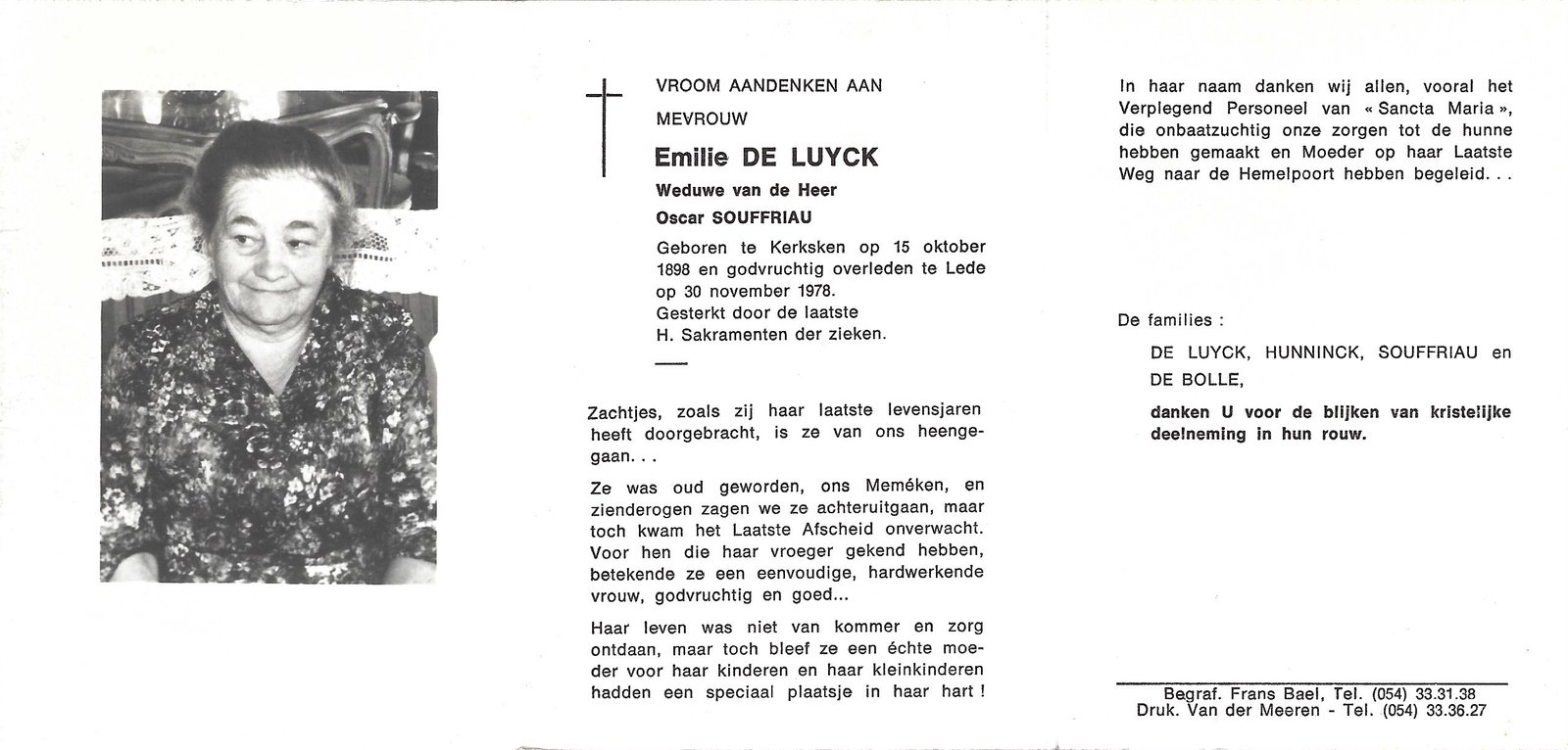 De Luyck EmilieSouffriau OscarKerksken15/10/1898Lede30/11/1978