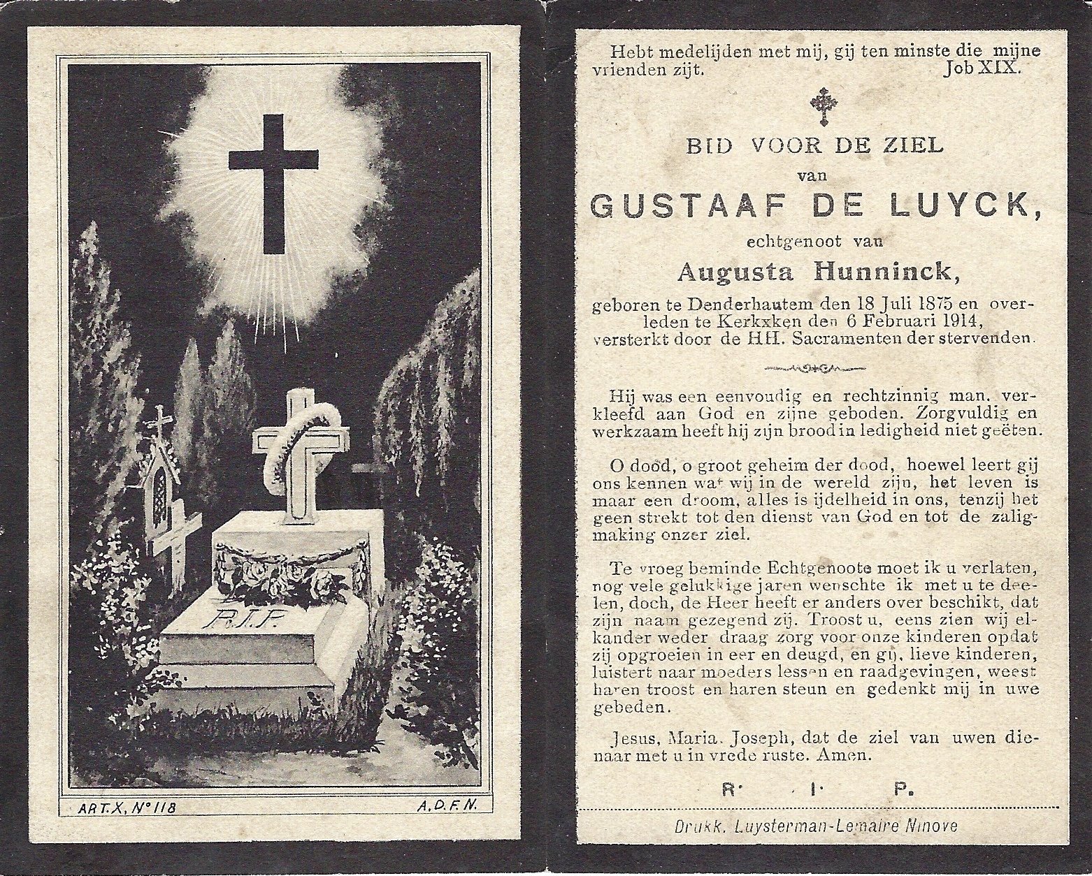 De Luyck GustaafHunninck AugustaDenderhoutem18/07/1875Kerksken06/02/1914